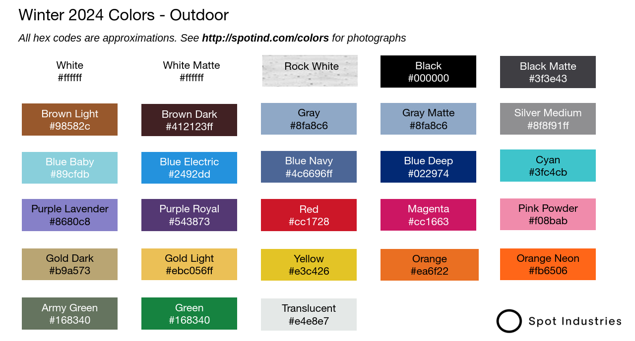 We offer a wide variety of colors including metallic finishes like gold and silver.