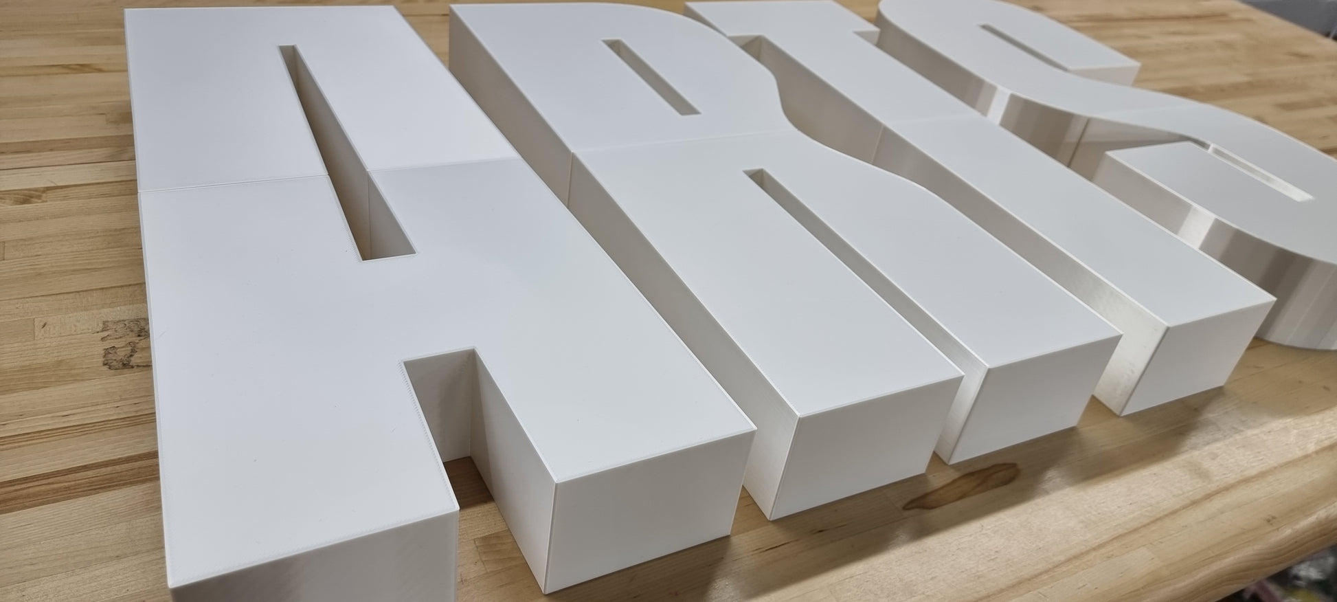 High quality completely custom 3 inch thick sign letters! Showcase your business in your own voice with our custom wall sign letters!