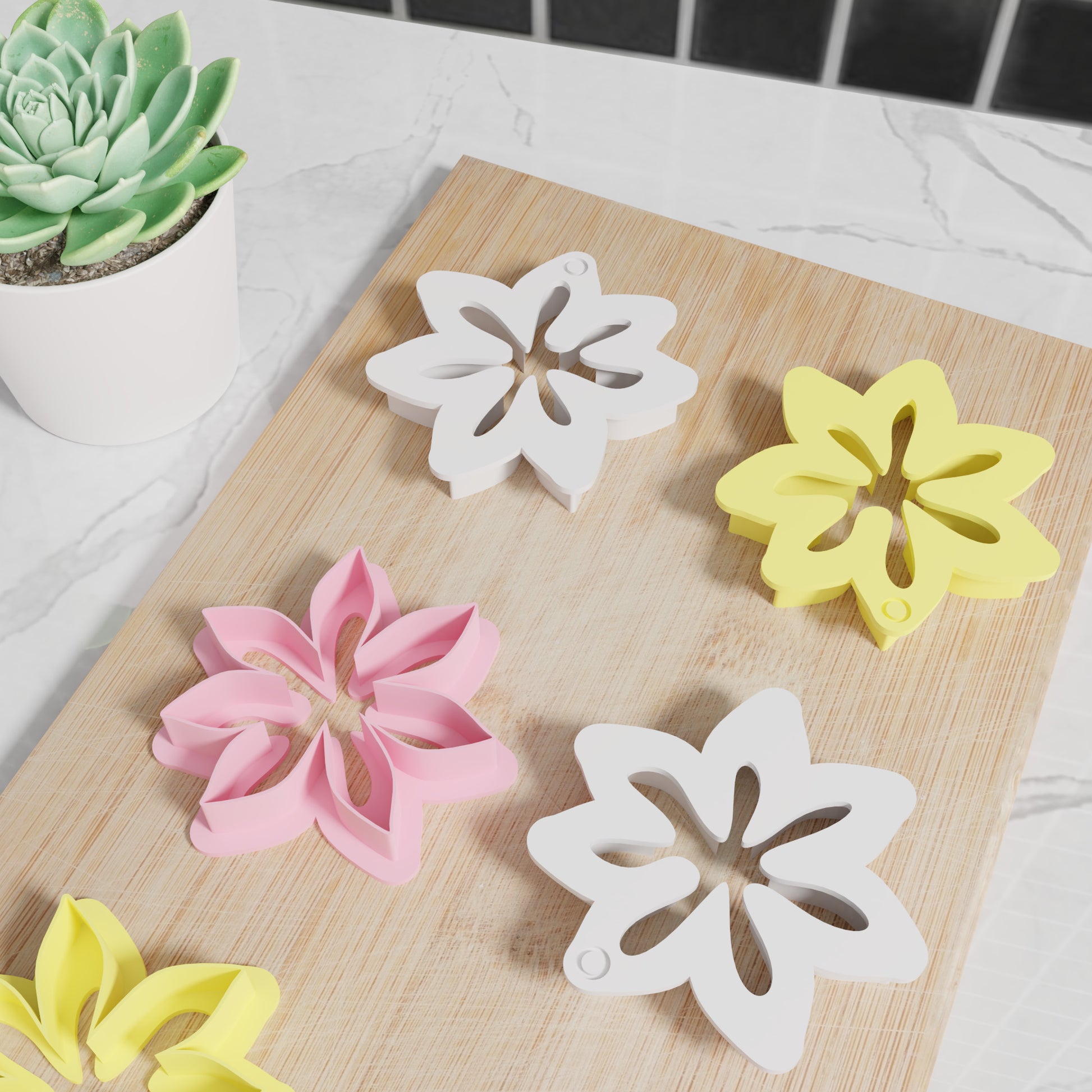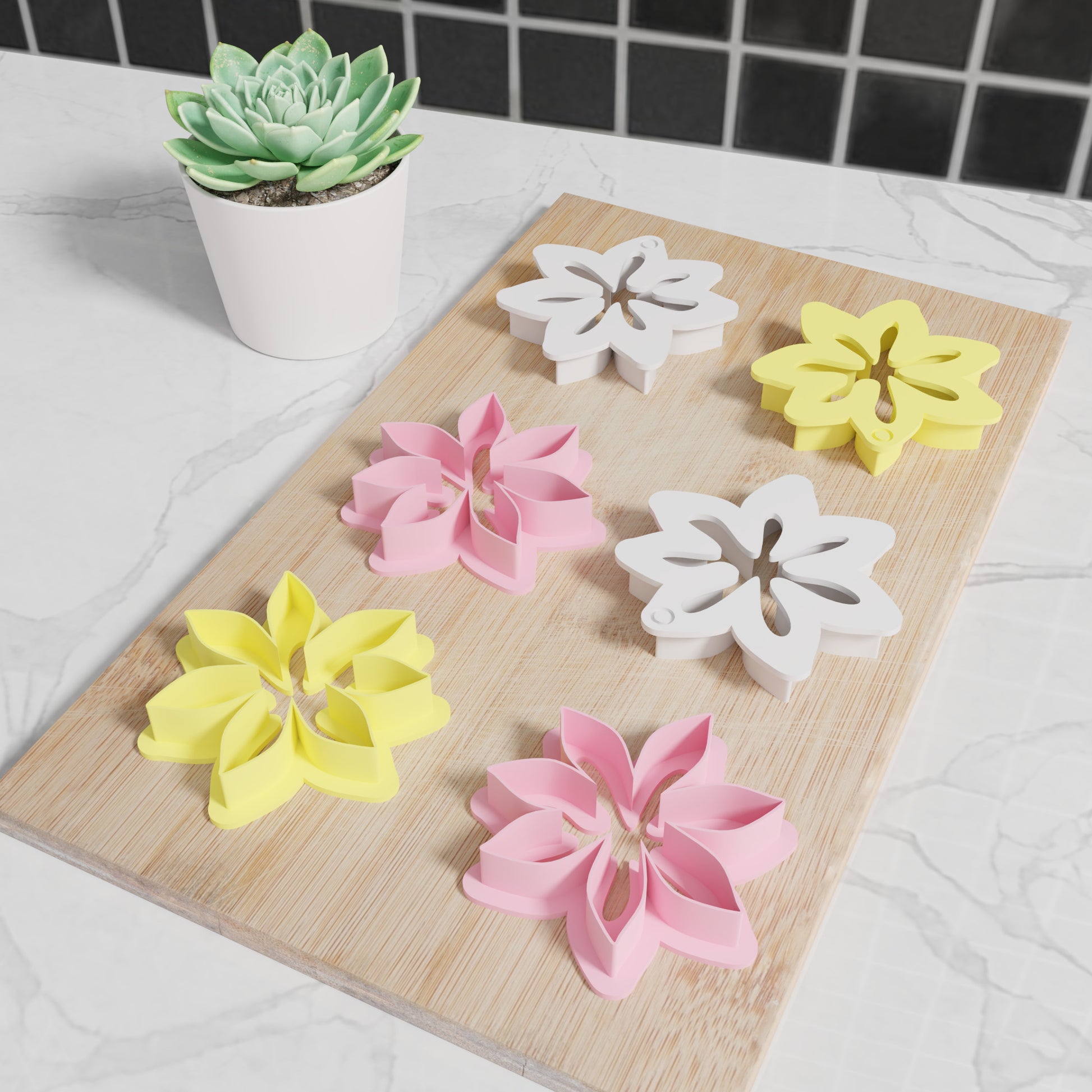 Set features our Easter lily cookie cutters in our modern, top down view pattern. This Easter lily is inspired by the many different shapes and forms of lilies that grow around the world.